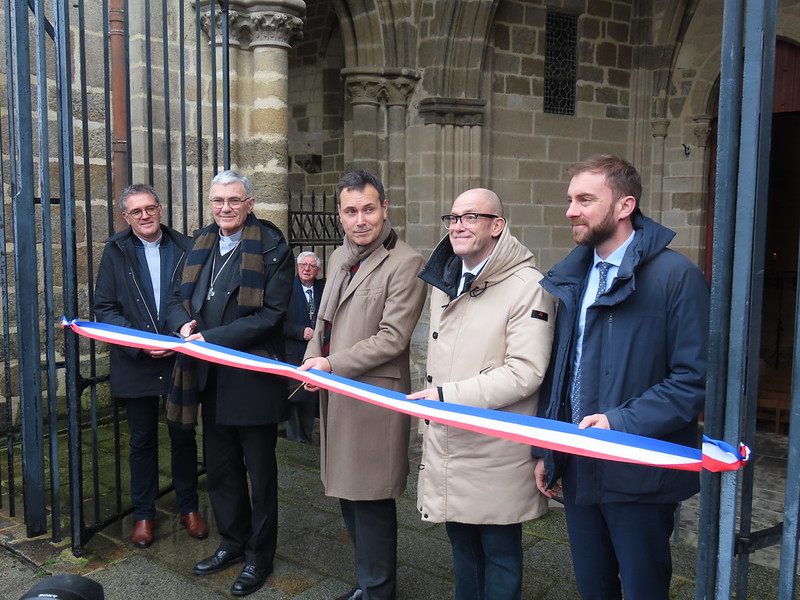 Les officiels civils et religieux étaient présents ce mercredi 11 février 2026 à l’occasion de l’inauguration de la cathédrale Saint-Etienne de Saint-Brieuc après travaux. Ces derniers ont commencé par couper le ruban tricolore et découvrir la plaque faisant mémoire de la restauration de la cathédrale par l’Etat dans le cadre du plan de relance. Les invités furent ensuite nombreux à entrer dans l’édifice religieux pour un temps de prise de parole et de concert ; un concert de l’Orchestre d’harmonie de Saint-Brieuc et de la Manécanterie des Petits chanteurs de Saint-Brieuc. Ce temps fort fut clôturé par la célébration de l’eucharistie présidée par Mgr Denis Moutel.